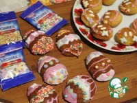 Расписать заготовки, посыпать карамельной посыпкой. Можно соединить половинки кремом. |