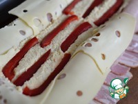 Прикрыть сыр куриным мясом и грудинкой. |