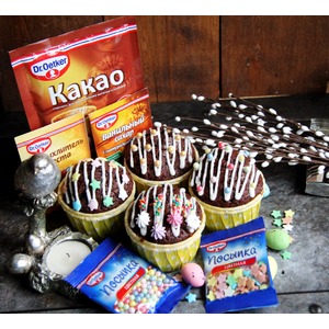 Наполнить капсулы для кексов не более, чем на 2/3 объема (!), т. к. в процессе выпечки излишки могут перелиться через край при подъеме! |
