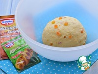 Тесто должно получиться мягким, нежным и пластичным. Положить тесто в чашу, затянуть пищевой пленкой и поставить в тепло на 45-50 минут. |