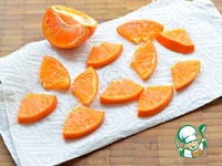 Мандарин нарезать небольшими дольками (вместе с кожурой), промакнуть дольки бумажным полотенцем. |