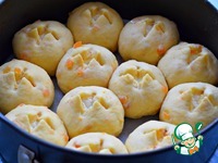 Каждую заготовку раскатать в круг толщиной примерно 1 см. В центр круга выложить чайную ложку начинки, слепить края, сформировав булочку. |