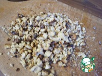 Тем временем очистим грецкие орехи, слегка обжарим их на сковороде, освободим от шелухи и измельчим. |