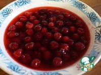 Приготовим желе как указано на упаковке и зальем им вишню, оставим в холодильнике для застывания. |