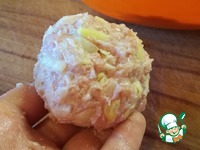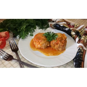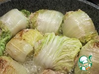 Листья пекинской капусты промыть. На каждый лист положить наши тефтели и завернуть. |