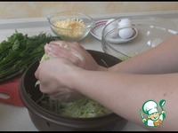 Для начинки смешаем творог со сметаной, посолим и измельчим погружным блендером. Добавим измельченный чеснок и зелень, перемешаем. |