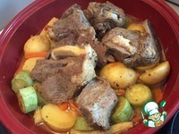 Описание: Пылилось это чудо, подаренное коллегами на юбилей, долго. Потом по случаю были подарены специи марокканские и солёные лимоны. Попытки удивить восточным тажином в тажине не увенчались успехом: ну не любители мы кухни северной Африки. Но как-то раз приготовила по-нашему, просто овощи и мясо, причём мясо трудно сказать какой коровьей части и какого сорта. Знаете, прижилось. Вкус ожидаемый, готовить просто, как в мультиварке. Теперь вот этот колпачок частенько занимает почетное место на праздничном столе и радует минимальной суетой и тратами. И экзотикой подачи.