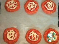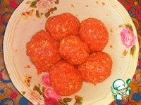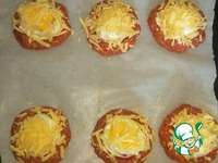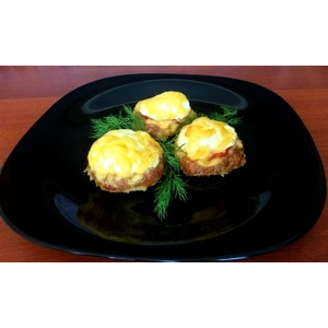 На застеленный пергаментом противень выложить мясные колобки. Немного приплюснуть и сделать в центре небольшое углубление. |