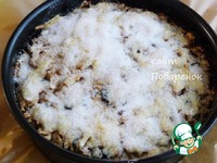 Второй слой манно-мучной смеси. Второй слой начинки (остатки), разравнять. Сверху остатки манно-мучной смеси, разровнять. Натереть на терке 50г холодного сливочного масла. |