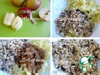 Яблоки очистить, удалить сердцевину, натереть на крупной терке. Они должны быть сочными. Добавить изюм, измельченные орехи, корицу, влить сок лимона. Тщательно перемешать. |
