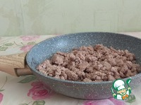 В сковороде обжариваем фарш на любом жире или масле. У нас все на диете жиров и специи при готовке используем минимальное количество. |