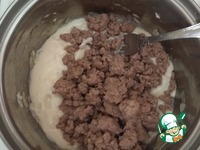 Когда сыр плавленый расплавился добавляем обжаренный фарш и перемешиваем. |