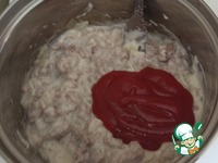 Фарш, луковица, кетчуп, сыр плавленый, вода, соль и по желанию можно добавить чеснок, специи и зелень. Готовить очень просто, справиться практический любой начинающий повар. Всем удачи! |