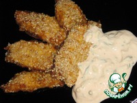 Запанировать филе в мучной смеси, затем в яйце. Положить на смазанный маслом противень, посыпать кунжутом, запекать 20-25 мин. при 200 градусах. |