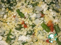 Минут через 5 высыпать туда же пшено и налить стакан воды. Перемешать. Готовить ещё 10 минут на среднем огне; |
