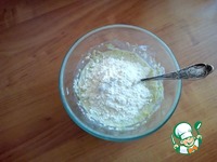 Добавляем овсяные хлопья, перемешиваем и даём 5 минут постоять, чтобы хлопья разбухли. Далее-муку и всё соединяем. |