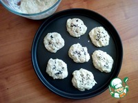 Выкладываем на антипригарную форму или пекарскую бумагу ложкой. Присыпаем сверху кунжутом. Можно сделать с маком. |