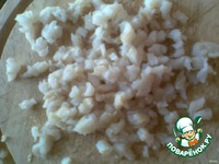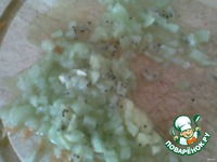 вот такая начинка. Лучше, если ее протереть в блендере, я так оставила за неимением последнего. |