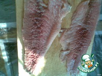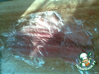 на фольгу выложить отбитую рыбку, на нее начинку и свернуть в рулет |