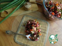 Описание: Наступил сезон молодого лука, зелени и огурцов. В магазинах можно купить уже молодую картошку, моркошку, да и свёкла скоро появится. Я вам предлагаю сделать витаминный винегрет со свежим огурцом и яблоком, заправленный пикантной ароматной заправкой.
