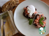 Описание: Я бы ещё и назвала это блюдо : "Салат"! Замечательное сочетание редиса и моркови, заправленных сметаной с чесноком и солью. Дополнила ещё маслинами. Но это не обязательно, просто они у меня были. Я подала на бородинском подсушенном хлебе эту закуску. Один тост дополнила яйцом-пашот. Можно просто сварить крутые яйца и порезать четвертушками. Можно закуску подать как салат. Делать её много не нужно, нужно сделать столько, сколько съедите. Сейчас как раз сезон редиски! Скоро и морковка молоденькая поспеет!