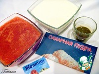 В йогурт добавьте мятный сок ( 2 ст. л.) и 2 ст. ложки сахарной пудры, в клубничное пюре (400г.) также добавьте сахарную пудру 2 ст. ложки.
