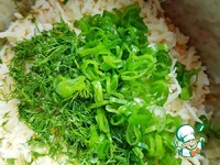 Добавить натёртый сыр и мелконарезанную зелень. |