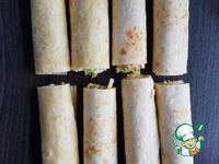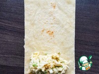 Лаваш нарезать на прямоугольники. На один край выложить начинку |