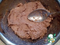 Все хорошо перемешать. Масса будет плотной, немного суховатой. Добавлять по 1 ст. л. сливок, каждый раз хорошо вымешивая. |