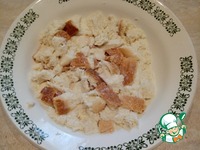 Батон нарвать кусочками и залить сливками. Дать постоять, чтобы сливки полностью впитались. |