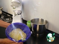 Накрываем пленочкой и оставляем в теплом месте для подхода. Это займет 1-1,5 часа. Тесто должно увеличиться вдвое. |