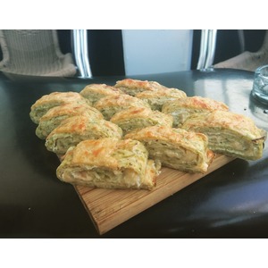 Нужно подождать пока корж остынет, до терпимой температуры и скручиваем рулет. Скрученный рулет посыпаем сыром и отправляем в духовку для того чтобы сыр расплавился.