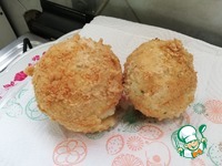 После этого каждую бомбочку обволакиваем в муке, потом в кляр, сухари и сразу в горячее масло. |