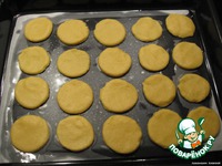 Из теста раскатать слой толщиной 8 мм, вырезать выемками кружки диаметром около 4 см, положить на смазанную маслом бумагу для выпечки на противень. |