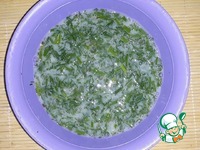 Нарезать зелень. Поставить разогреваться антипригарную сковороду. Смешать все ингредиенты. По желанию добавить соль и специи. |