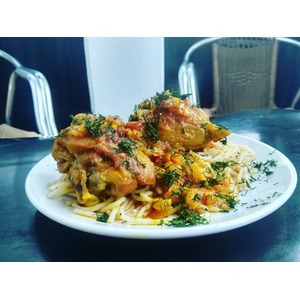Убавляем огонь до ниже среднего, добавляем курицу, перемешиваем, накрываем крышкой и оставляем минут на 25-30.