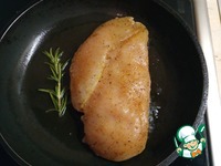 На сковороде раскалить ложку растительного масла, добавить веточку розмарина. Обжарить куриное филе на огне выше среднего с двух сторон, по 5-7 мин. с каждой стороны. |