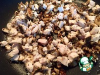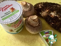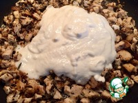 Йогурт и плавленый сырок добавить к грибам с курицей. |