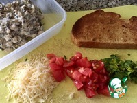 Помидор мелко нарезать, сыр натереть на мелкой тёрке, хлеб подсушить или в тостере, или на сковороде без масла. |