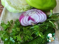 Огурец и перец нарезать тонкой соломкой. Выложить к капусте. Перемешать. |