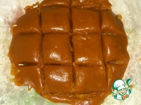 Остудить. Поставить в холодильник на 20 минут. Сделать надрезы, пока ириски не затвердели и убрать обратно в холодильник на 30 минут. |