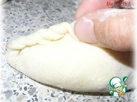 Толщина теста около 7-10 мм. В середину кладу 1 ст. л. начинки. |
