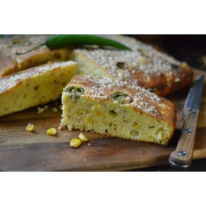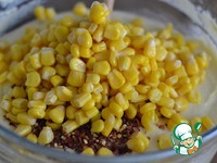 Добавить мелко нарезаный перец чили, кукурузу и 2/3 тертого сыра. Перемешать. |