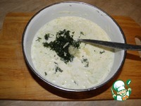 Затем добавляем измельченную зелень и чеснок, все перемешиваем |