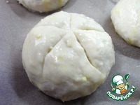Укладываем булочки на противень, сверху делаем крестообразный надрез или, если у кого есть вот такой штамп, можно и так их надрезать. |