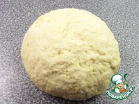 Из муки, дрожжей, соли, сахара, воды и 150 гр сыра, лучше "Гауда", вымесить тесто. У меня получилось ровно 800 гр готового теста. |