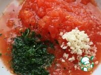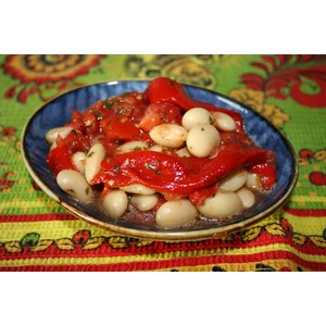 Мелко нарезать чеснок и петрушку. Натереть помидоры. Смешать с перцем и фасолью. Добавить по вкусу уксус и растительное масло, солим так же по вкусу. |