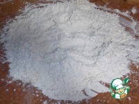 Затем в мучной массе делаем углубление и вливаем жидкую составляющую, которая стояла в морозилке. |