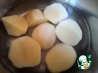 Картофель почистить, нарезать кусками и отварить до готовности. |