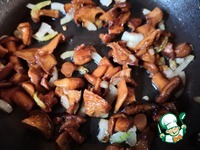 В это же время обжарить мелкопорезанный лук и грибы до готовности. |